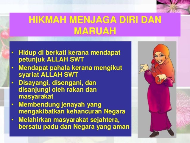 Related : Kepentingan Menjaga Maruah Diri - Setiap individu muslim wajib menjaga diri dan maruah dengan memelihara diri daripada melakukan perbuatan yang mencemarkan nama baik da menjatuhkan kehormatan diri sendiri.memelihara diri dan maruah amat penting demi menjaga kemuliaan diri,keluarga, masyarakat dan..