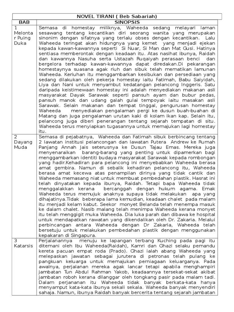 Posted on april 13, 2018 by admin. Menyingkap rahsian tirani dengan kaca mata femenisme adalah juga tentang dilema seorang wanita dalam industri, iaitu industri pelancongan di sarawak, khususnya perusahaan penginapan chalet dan homestay. Plot dan teknik plot novel silir daksina. 。 kertas soalan peperiksaan percubaan spm, ujian, pertengahan tahun, akhir tahun, kbat, karangan, novel, buku teks tingkatan 5 tahun 2021. Novel tirani (selangor negeri sembilan kuala lumpur putrajaya).